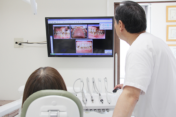 歯や歯茎の健康状態をチェックします。